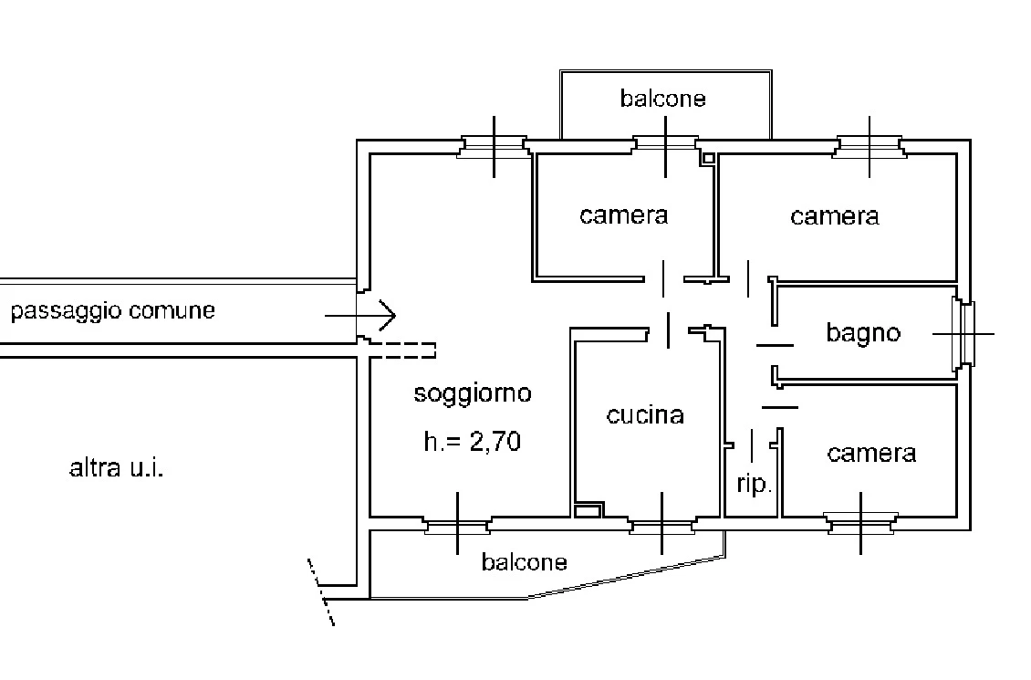 Proseguendo, trovi un corridoio ben organizzato che accompagna verso la zona notte: tre camere da letto, di cui una matrimoniale, pensate per offrire il giusto spazio a ogni componente della famiglia. Il bagno è grande, comodo e ben disposto, mentre il ripostiglio ti aiuterà a tenere tutto in ordine senza rinunciare a nulla.
